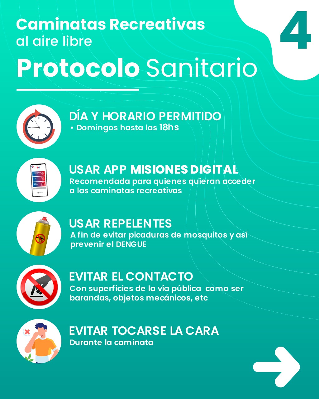 8) Deberá realizarse la caminata recreativa con barbijo y/o tapaboca.