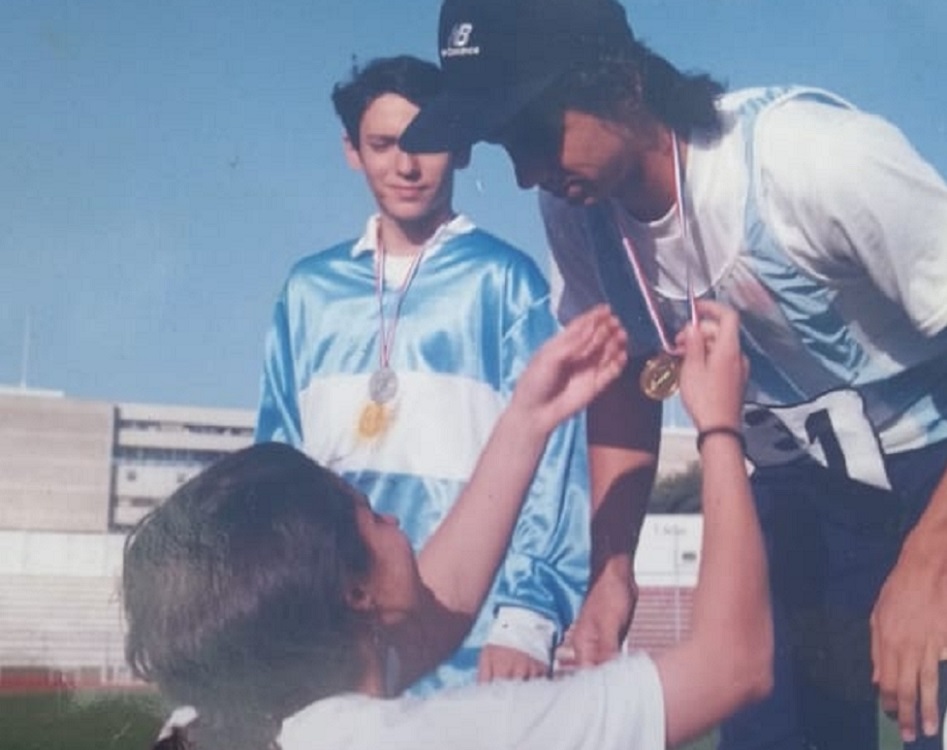 Uhhh, una emoción tremenda. Estar ahí, bien arriba, ver la bandera argentina… No tiene precio eso… Y por haber conseguido la mejor marca técnica, para el cierre me tocó ser capitán del equipo. Entonces cuando premiaron a las delegaciones por equipo, me tocó pasar a mí de entre los 40 o 50 que éramos de Argentina. Además, fuimos terceros con el equipo de la posta 4×100. Fue increíble. Cuando veía la bandera desde el podio, venir de un pueblo tan chico, con tanto sacrificio… no podía aguantar las lágrimas.