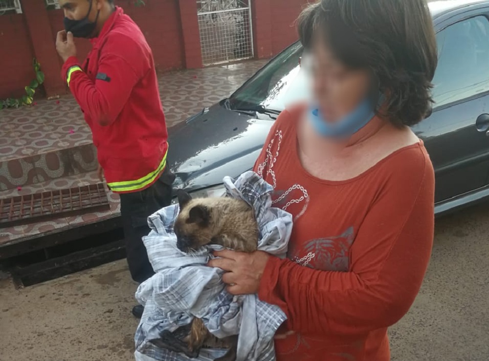 En tanto, el segundo caso tuvo lugar en la intersección de las calles Ambrosetti y El Yerbal, donde los mismos bomberos salvaron esta vez a “Micha”, una gata siamesa que se encontraba hace días atascada en una alcantarilla del lugar.