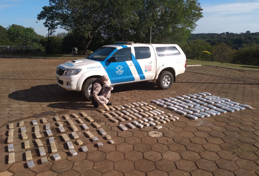 La Prefectura Naval Argentina incautó más de 44 kilos de marihuana en Puerto Iguazú, en el marco de los constantes patrullajes que se realizan en la zona de frontera para evitar el tráfico de estupefacientes.