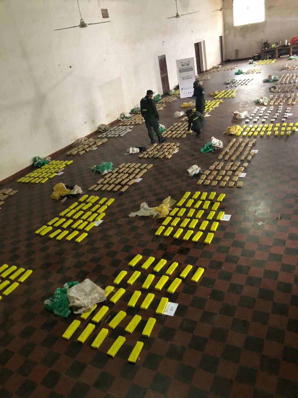 Los trabajadores de la fuerza realizaron la prueba de campo Narcotest sobre la sustancia hallada en las bolsas, la cual dio como resultado “positivo para marihuana”, identificando un total de 890 paquetes y un peso de 718 kilogramos de esa droga.