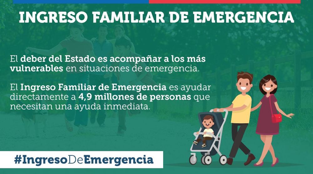 “Ya está depositado en las cuentas RUT de 499.000 hogares, que incluyen 1,7 millones de personas, el pago del primero de los tres meses que abarca el Ingreso Familiar de Emergencia“, anunció el presidente Sebastián Piñera.