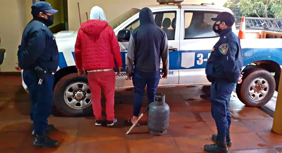 Tras la denuncia correspondiente y las tareas investigativas efectuadas por el personal policial de la Comisaría de Campo Grande, en menos de una hora dieron con el paradero de los autores, ambos mayores de edad, en el mismo barrio donde cometieron el ilícito.Ambos, tenían en su poder la garrafa sustraída y el machete utilizado en el hecho.
