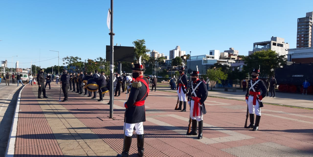 El clima ayudó con un sol radiante y los integrantes de la banda compartieron varias marchas patrias en el cuarto tramo de la avenida Monseñor Jorge Kemerer para las personas que en ese momento se recreaban en esta parte de la ciudad.