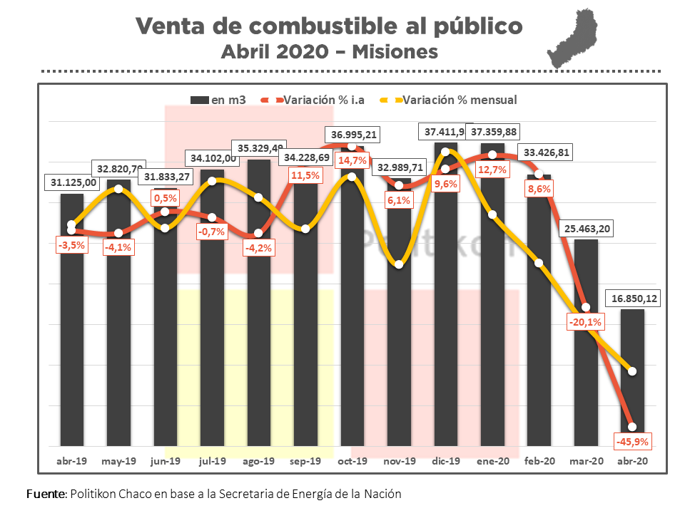 En el mes de abril de este año se profundizó la caída de la venta de combustible al público y Misiones sufrió la retracción más alta del NEA con un -45,9%.