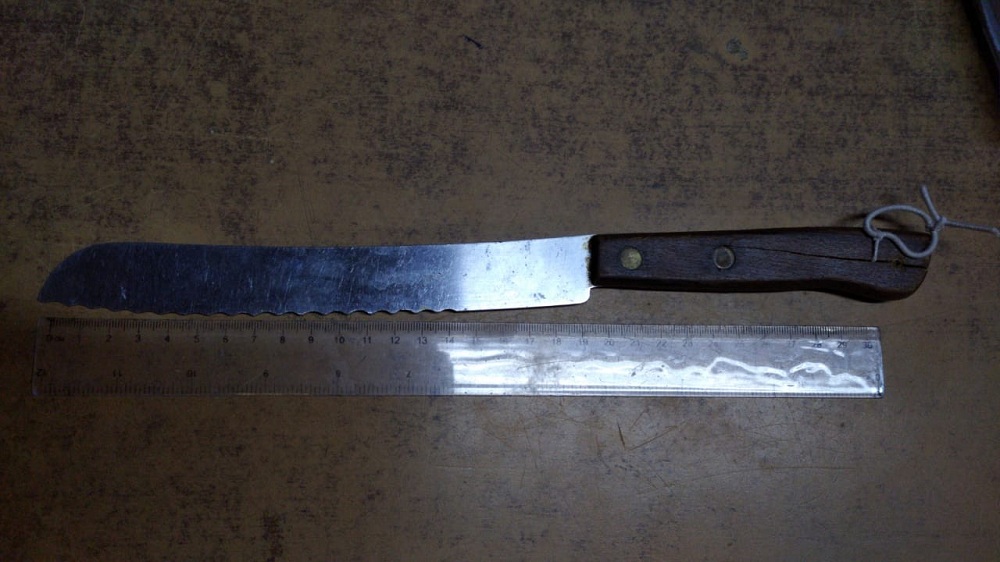 En el lugar, al llegar los uniformados, el delincuente se tornó violento y atacó con un cuchillo a los policías, rompiendo la indumentaria de uno de ellos. Finalmente fue desarmado y trasladado a sede policial, donde al llegar rompio vidrios de la entrada e intentó escapar. Se incautó en su poder un cuchillo de 30 centímetros.