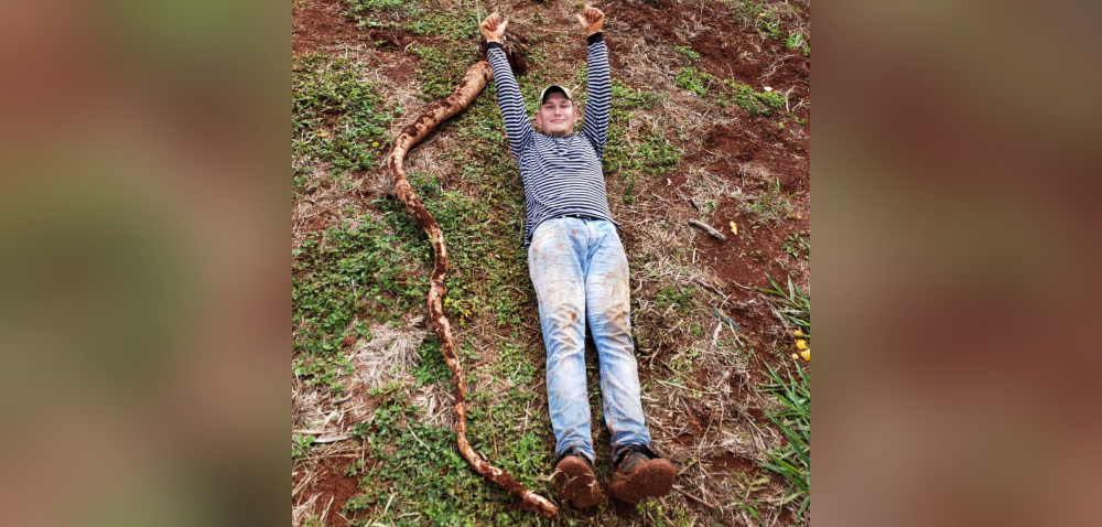El agricultor comenzó a extraer el cultivo pero cada vez se hacía más larga y más larga. Al final, con la planta ya afuera se sorprendió al ver la longitud de sus raíces. Con metro en mano y una sonrisa, el hombre comenzó a medir la mandioca que, para sorpresa de los testigos, superó los tres metros de largo.