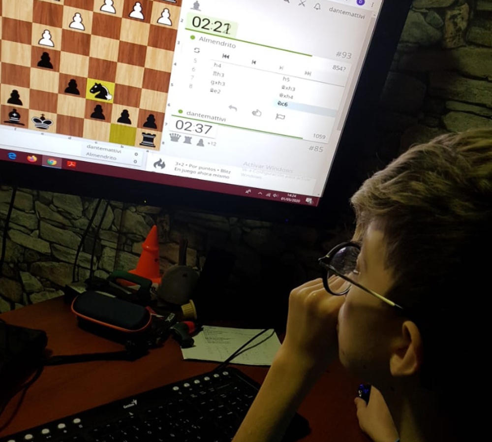 Dante tiene 12 años y es de Oberá. Es el segundo de cuatro hermanos, Dana (18), Dorian (9) y Dasha (4). En la actualidad cursa séptimo grado en el Instituto Carlos Linneo y por estas horas, en pleno aislamiento social por la pandemia de coronavirus, se encierra en su habitación y se la pasa todo el día a pleno ajedrez online. Una situación similar a la de cientos de chicos de la provincia y el país, ya que la disciplina es una de las pocas que se pueden realizar de manera virtual sin inconvenientes.