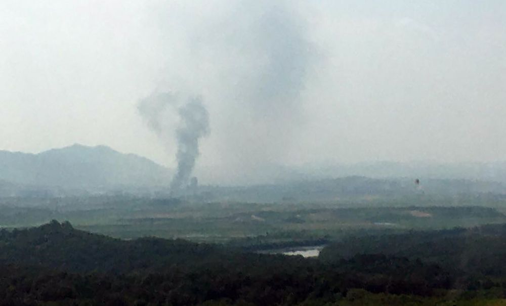 Las imágenes de la explosión difundidas por la Casa Azul, tal como se conoce a la presidencia surcoreana, mostraron una explosión que abarcó a varios edificios al otro lado de la frontera en Kaesong, y una torre cercana que se derrumbó parcialmente mientras un enorme hongo de humo se elevaba hacia el cielo.