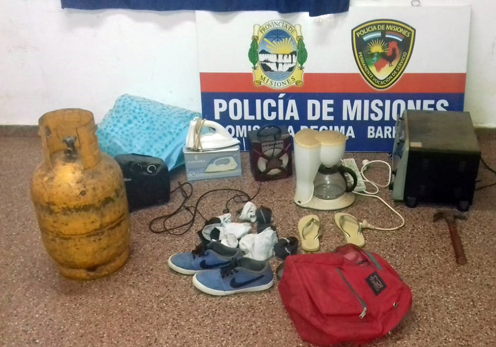 Inmediatamente una comisión policial llegó al lugar y observó a dos jovencitos, que al notar su presencia, abandonaron varios objetos y se dieron a la fuga. Allí, se procedió al secuestro de un cilindro de gas de 10kg, un horno eléctrico, una mochila, una pava eléctrica, un par de zapatillas, una cafetera, un caloventor, un equipo de música, una plancha, entre otros elementos.