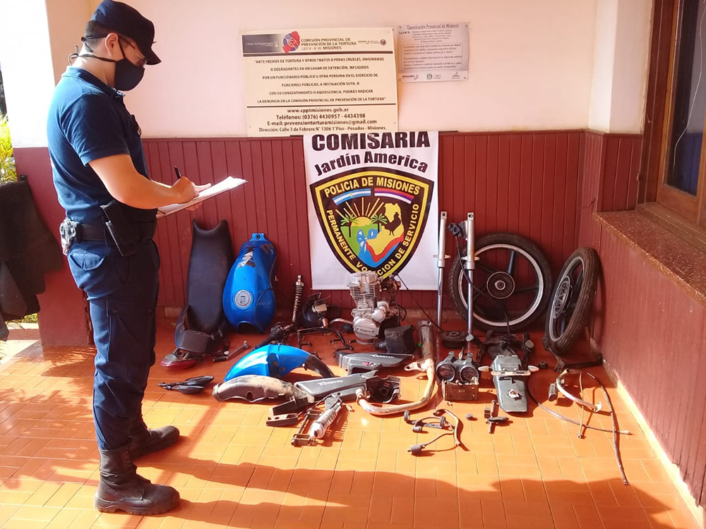 Las averiguaciones los orientaron hacia el Barrio Hermoso, precisamente a la casa de un joven de 25 años conocido como “Tatita”. Tras dialogar con la madre, ella les entregó las partes de la moto que ya estaba desguazada. Asimismo también detuvieron a su hijo quien no opuso resistencia.