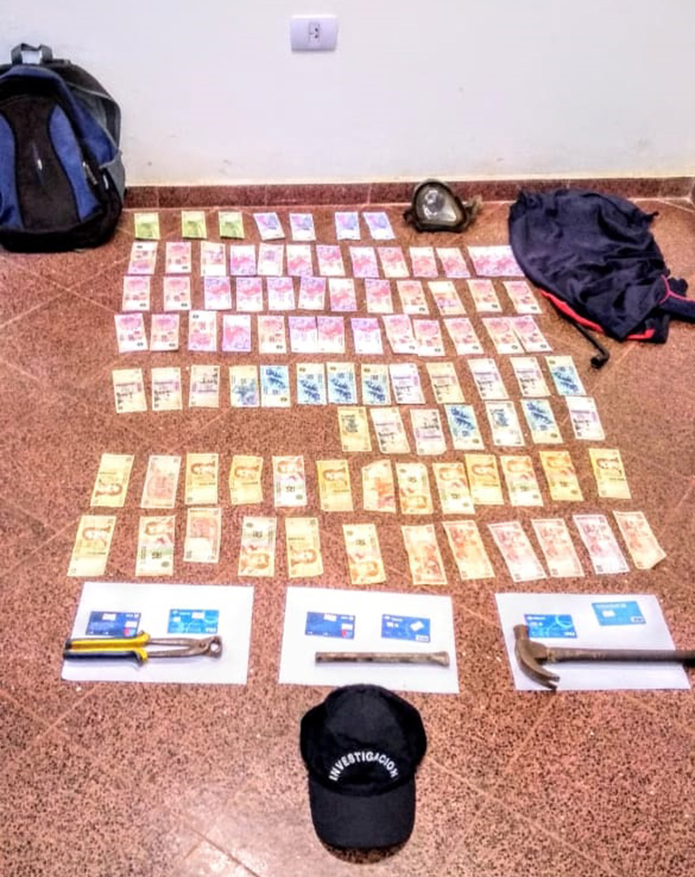 Además, se secuestró la suma de $7.470 de pesos en efectivo y 6 tarjetas de débito correspondiente a diferentes personas.