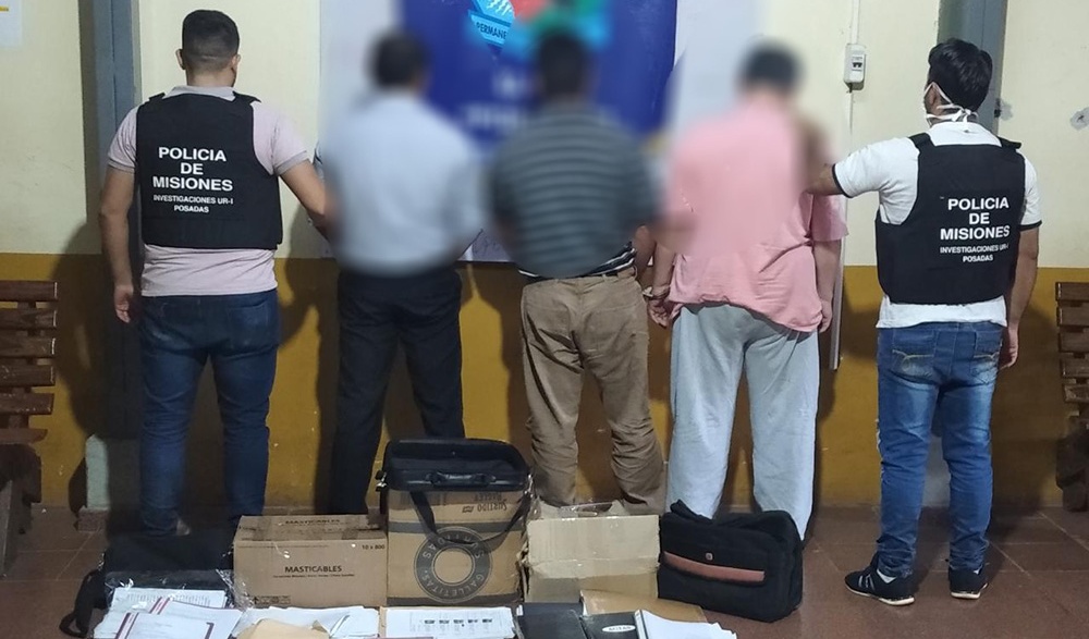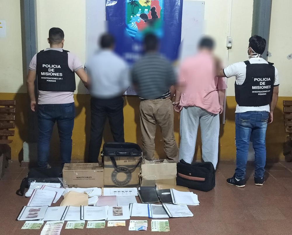 De esta forma, terminaron detenidos tres hombres de 61, 51 y 33 años. Además, en uno de los domicilios allanados, en el barrio Néstor Kirchner de Posadas que se presume se utilizaba como oficina, se secuestraron varias documentaciones de los negocios ilegítimos, como así también una notebook y tres teléfonos celulares.