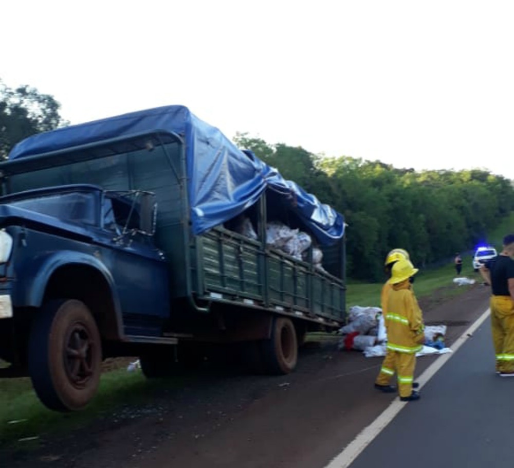 El siniestro se registró este sábado alrededor de las 16.45, cuando un camión Dodge 800 y un Mercedes Benz 1634 que circulaban en el mismo sentido, colisionaron a la altura del kilómetro 1414 de la citada arteria. El primero de ellos transportaba mandioca y fue el que recibió el impacto en su parte trasera. Aparentemente llevaba personas en el sector de carga.