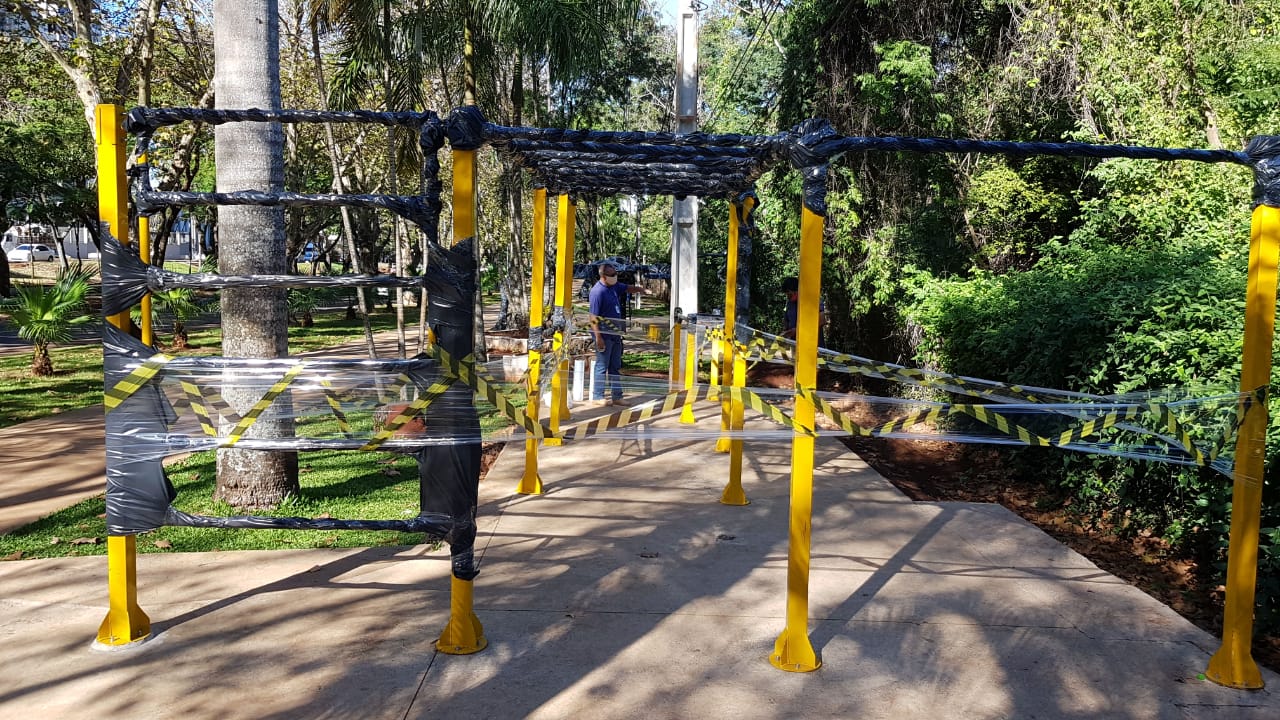 Por disposición del municipio, Foz de Iguazú inició este la prohibición de gimnasios al aire libre y parques infantiles como medida preventiva contra el nuevo coronavirus. El trabajo lo está realizando el Departamento de Obras de esta ciudad, que utiliza lonas y cintas para aislar los sitios y evitar el uso de espacios por parte de la población en este período pandémico.