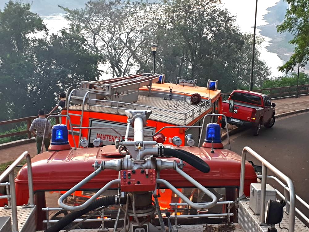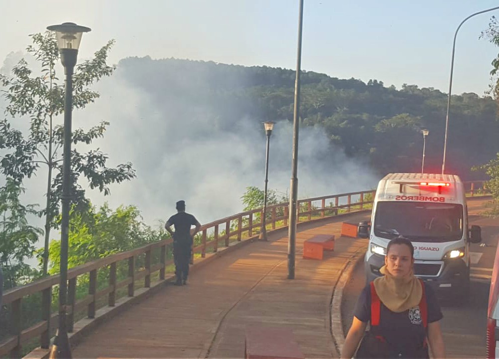 Esta tarde pasadas las 16.30 Bomberos Voluntarios de Puerto Iguazú recibieron una denuncia de un incendio en un pastizal en la zona de la costanera, entre los ríos Paraná e Iguazú, cerca del Salto Mariposa.