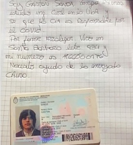 Asimismo, subió a un perfil de Instagram una foto con su DNI y un papel escrito a mano, en el que daba a conocer sus datos personales y señalaba: “Sé que la CIA es responsable por el Covid. Por favor viralizar”.