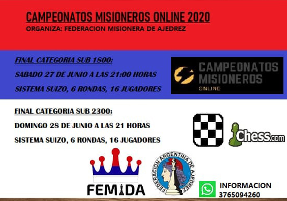 Momentos decisivos son los que se vivirán este fin de semana. El Campeonato Misionero Online organizado por la Federación Misionera de Ajedrez (FeMidA) coronará a sus dos campeones entre mañana sábado y el domingo, en una doble jornada imperdible para los amantes de los tableros.