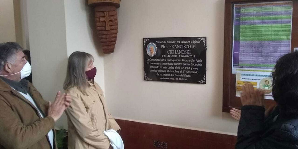 Durante la jornada se celebraron distintas misas, pero la central fue a las 10. Antes, con la presencia del párroco Julio Centurión, Juan Ruiz Díaz y las comunidades vecinas, así como también de la intendenta María Eugenia Safrán, concejales y el obispo de Posadas, Juan Rubén Martínez, se descubrió en la entrada de la iglesia San Pedro y San Pablo una placa en homenaje al sacerdote Francisco Cichanowski, tan venerado por los fieles apostoleños, quien falleciera en 2019.