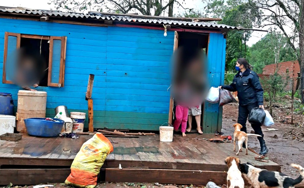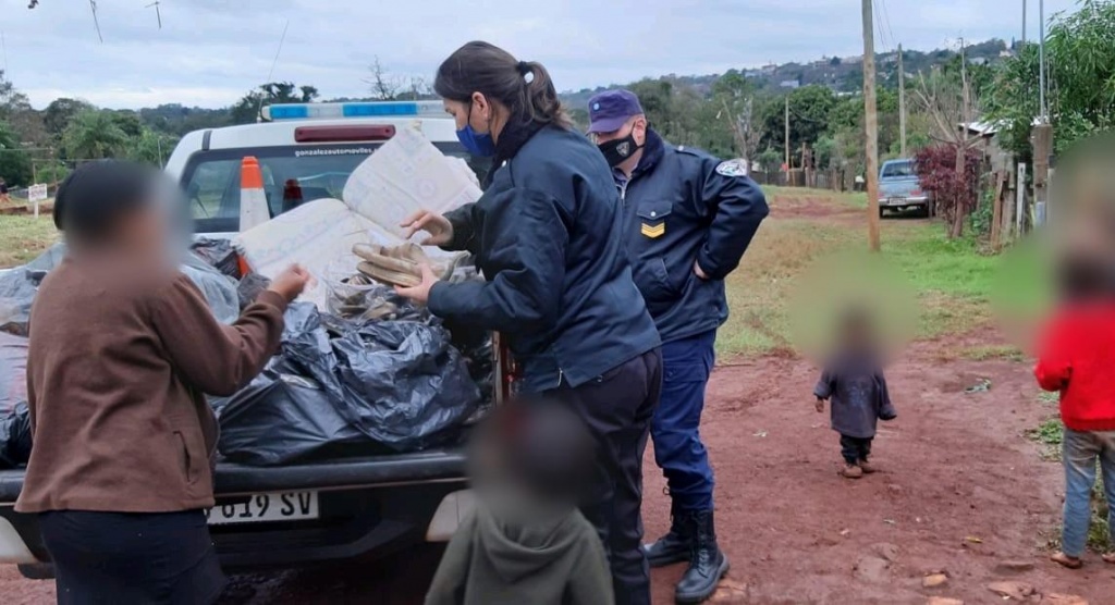 La Policía entregó donaciones a familias afectadas por el temporal en Oberá