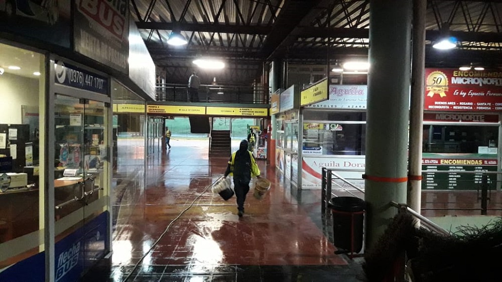 Con el objetivo de mantener en buenas condiciones la Terminal de Omnibus de Posadas, la Municipalidad de la capital provincial desarrolla un importante operativo de limpieza en dicho e histórico espacio físico, el cual debido a la pandemia de coronavirus carece de actividad desde marzo pasado.