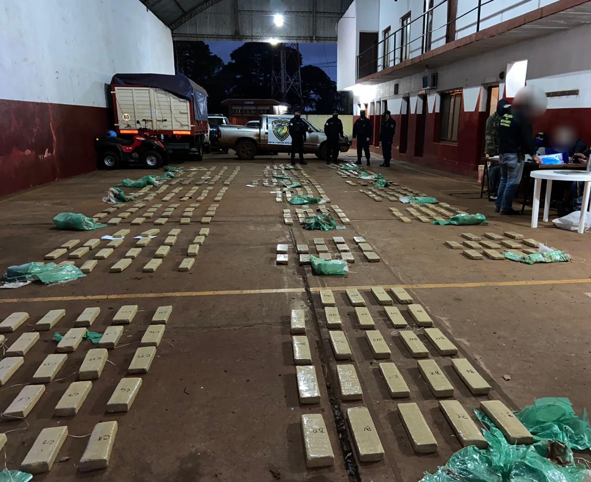En la carrocería del vehículo, se hallaron bultos cuadrados envueltos con cinta de embalaje. Los policías secuestraron la camioneta y el cargamento, y posteriormente fueron trasladados al cuartel de la División Bomberos de Jardín América.