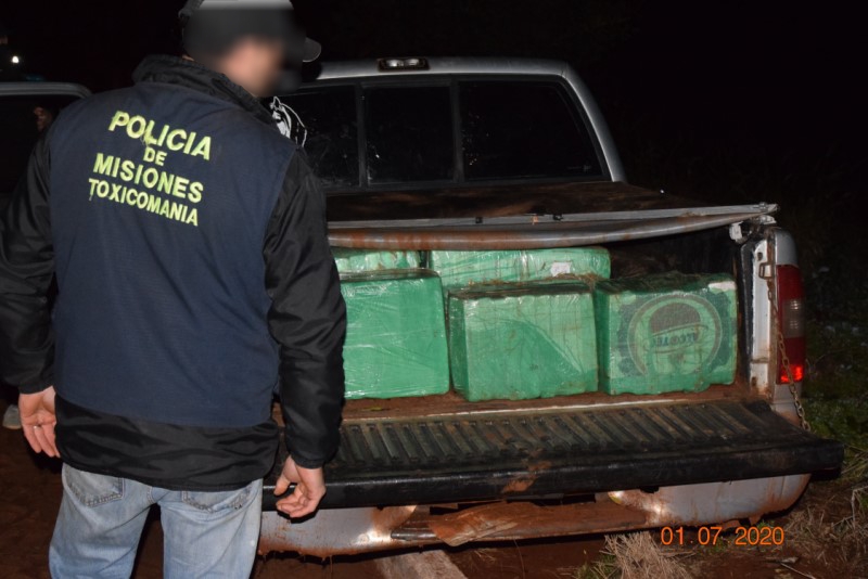 El procedimiento se realizó a la medianoche en un camino de tierra de la localidad de Hipólito Yrigoyen, donde personal de la División Toxicomanía de la Unidad Regional IX, interceptó una camioneta Chevrolet S10 cargada con 386 kilos de marihuana.