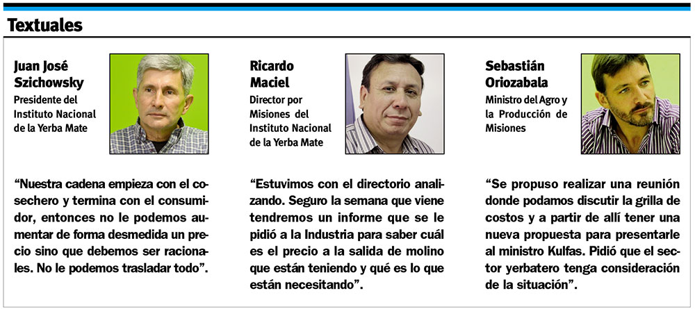 “No podemos trasladar todo, porque se debe pensar que el consumidor está en pandemia, está sin trabajo o con problemas laborales por eso se debe ser racionales; se debe pensar en todos los eslabones de la cadena yerbatera”, apuntó.