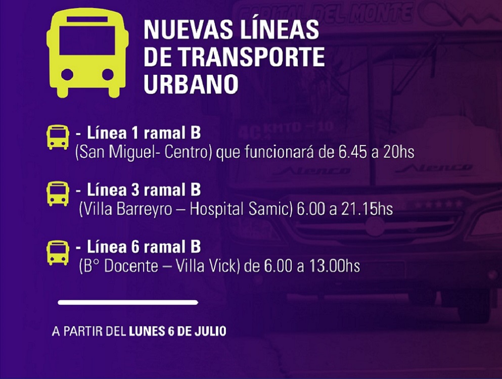 La Municipalidad de Oberá informó que la empresa prestataria del servicio del transporte urbano de pasajeros y el Gobierno de esta ciudad, acordaron la habilitación de tres nuevas líneas que comenzarán a funcionar a partir de mañana lunes 6 de julio.