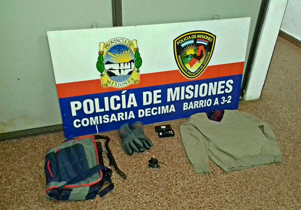 Posteriormente, en el patio una casa cercana a la detención, un vecino entregó una mochila, la cual fue arrojada por los detenidos, en su interior contenía ropajes, una pata de cabra, un par de guantes, un cargador y la llave de un automóvil Fiat.