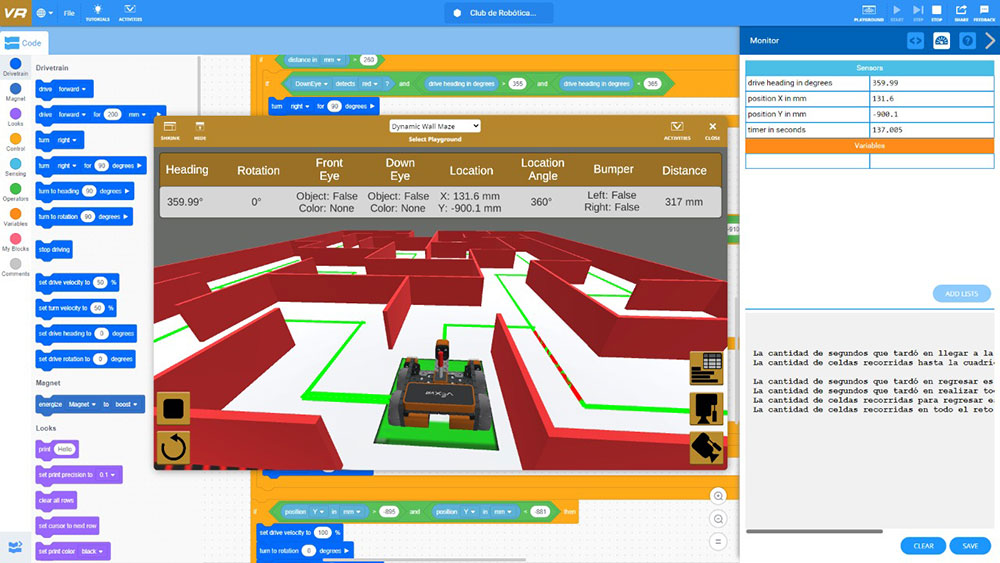 “Cada laberinto es como si fuera una hoja cuadriculada con paredes. El objetivo era que el robot llegue a la meta de todos los laberintos y una vez cumplido eso, debía informar cuánto tiempo le llevó hacerlo y cuántas casillas le llevó”, dijo.