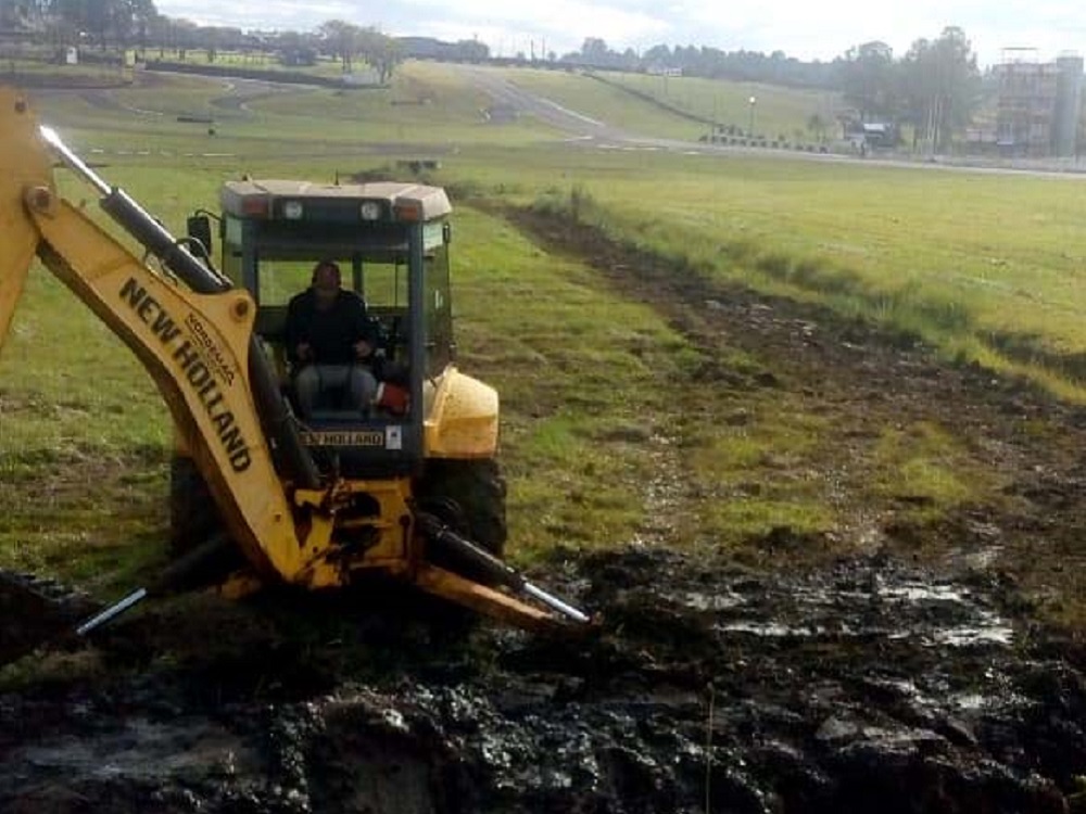 En este caso, el reacondicionamiento con las máquinas se realizaron en la parte del trazado donde compiten las categorías nacionales (detrás de los baños de boxes) y en el tratamiento de desagües en frente a la recta principal.