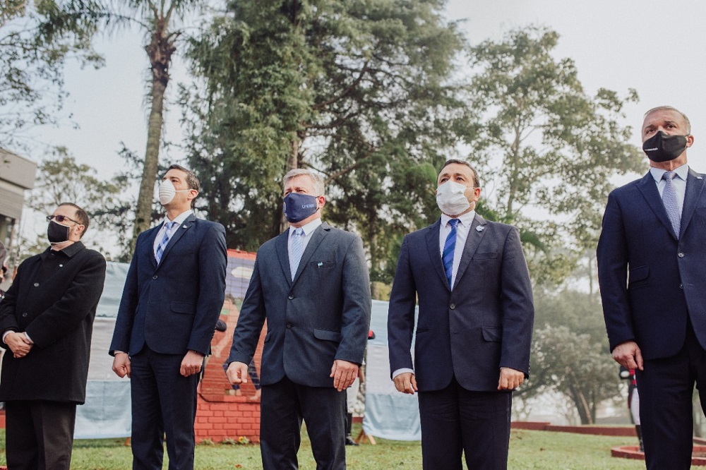 El mandatario provincial encabezó el emotivo acto acompañado por el vicegobernador, Carlos Arce y parte de su Gabinete: los ministros de Gobierno, Marcelo Pérez; de Educación, Miguel Sedoff; de Agricultura Familiar, Marta Ferreira; y de Derechos Humanos, Graciela Leyes. Estuvieron presentes en Puerto Rico también el diputado provincial, Martín Cesino; el diputado nacional, Diego Sartori, el intendente local, Carlos Koth, jefes de unidades militares y de seguridad con asiento en la zona.