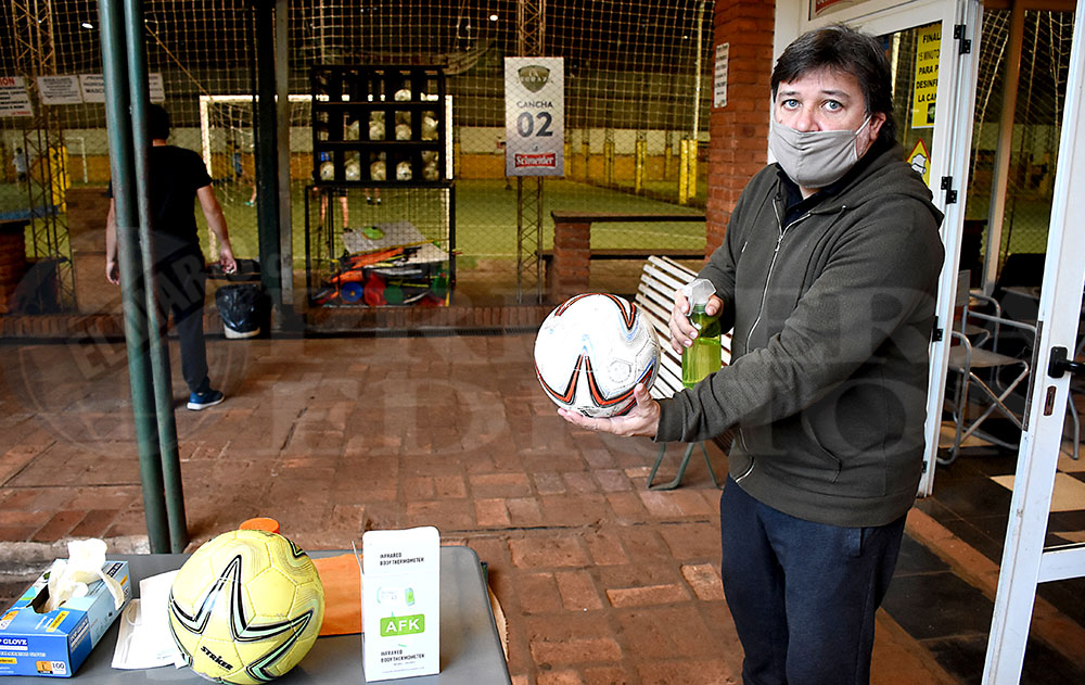 El propietario de La Terraza también explicó en qué consiste básicamente el protocolo a seguir. “Antes que todo, los deportistas tienen que tener un turno previo reservado y respetar el horario porque los partidos son de 50 minutos (los otros diez son para acondicionar la cancha para el siguiente grupo). Es obligatorio jugar con barbijos y que tape solo la boca cuando están jugando. Son sólo diez jugadores, cinco de cada lado y no puede haber suplentes. Los baños no se pueden ocupar, salvo una emergencia; al finalizar el partido uno de los jugadores es que el se encarga de juntar la plata para pagar la cancha y tienen que retirarse inmediatamente. Tenemos la alfombra para desinfectar las zapatillas, alcohol en gel, repelente, la pistola para medir la temperatura, en fin todo”.