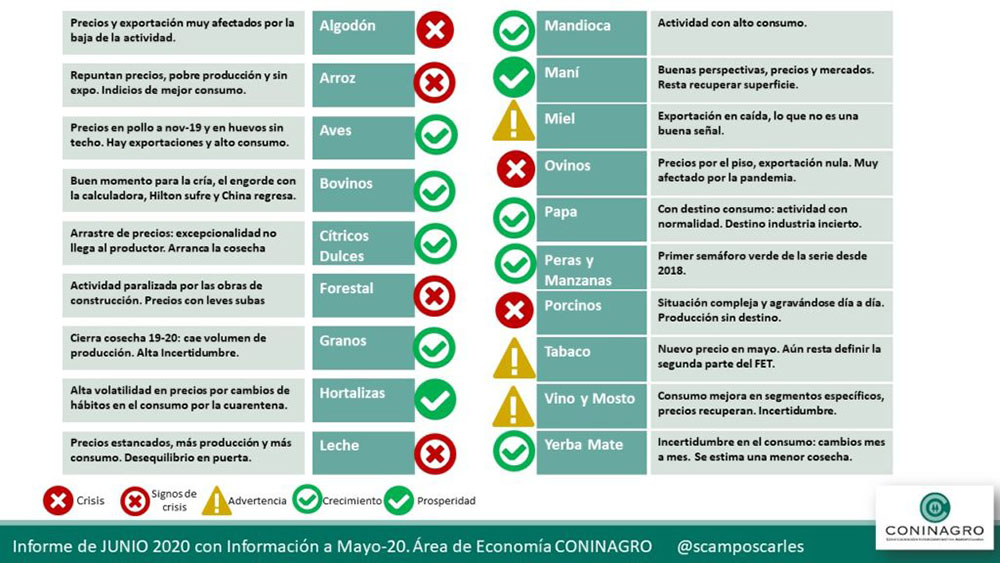 La Confederación Intercooperativa Agropecuaria (CONINAGRO) publica mensualmente el “Semáforo de las Economías Regionales”, para que el productor agropecuario pueda hacer un seguimiento de los indicadores que se analizan.