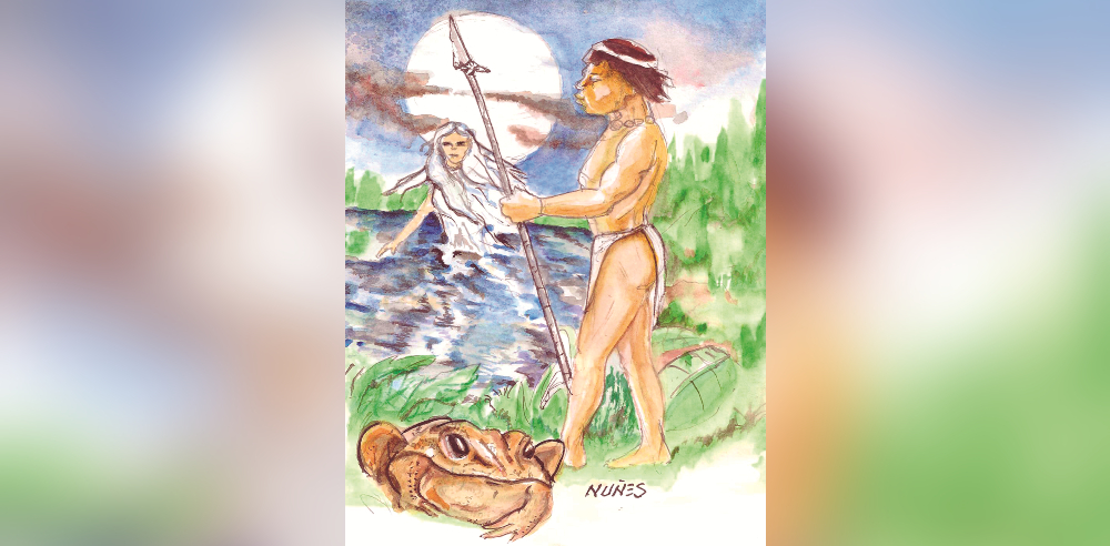 Desde entonces, la pareja de sapos salta y nada en la laguna cercana al río y su numerosa progenie croa su concierto adorando a la luna.