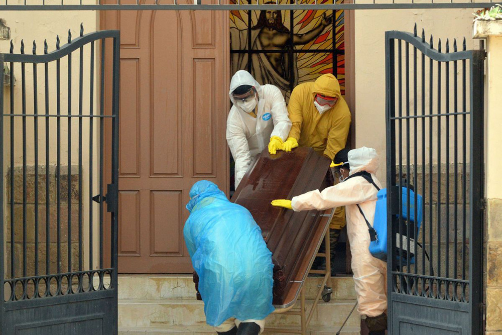 El ataúd de una víctima de coronavirus en Cochabamba, Bolivia
