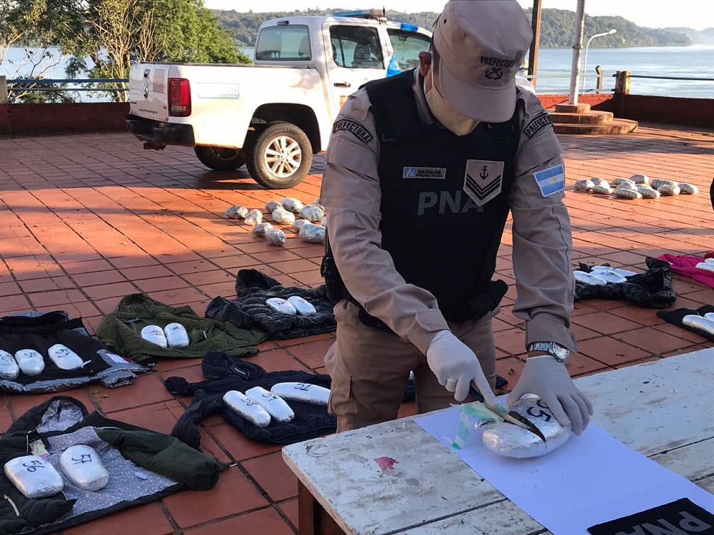 Pese a estar amparado por la oscuridad de la noche, la Prefectura Naval Argentina secuestró este jueves cerca de 40 kilos de marihuana, escondida en medio de más de una docena de camperas, en un procedimiento realizado en la localidad de Santa Ana.