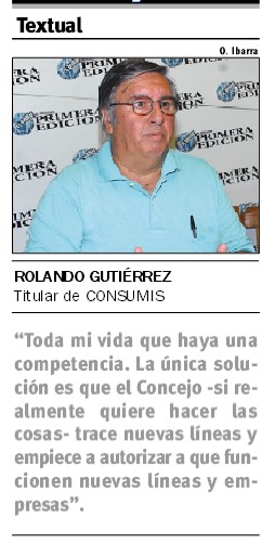Rolando Gutiérrez, titular de la Asociación de Consumidores y Usuarios de Misiones (CONSUMIS) recordó que propuso “toda mi vida que haya una competencia. La única solución es que el Concejo -si realmente quiere hacer las cosas- trace nuevas líneas y empiece a autorizar a que funcionen nuevas líneas y empresas”.