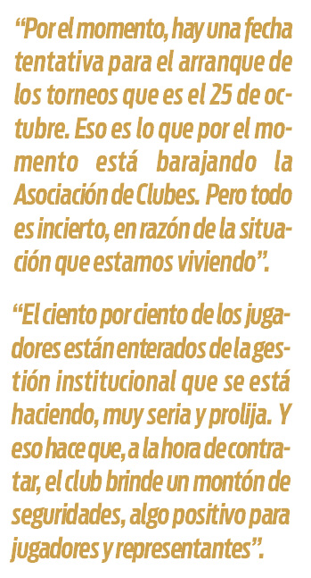 “Por el momento, hay una fecha tentativa para el arranque de los torneos que es el 25 de octubre. Eso es lo que por el momento está barajando la Asociación de Clubes (AdC). Pero todo es incierto, en razón de la situación sanitaria que estamos viviendo”, aclaró Hiriart, desde Rosario, donde aguarda por novedades para regresar a Oberá.