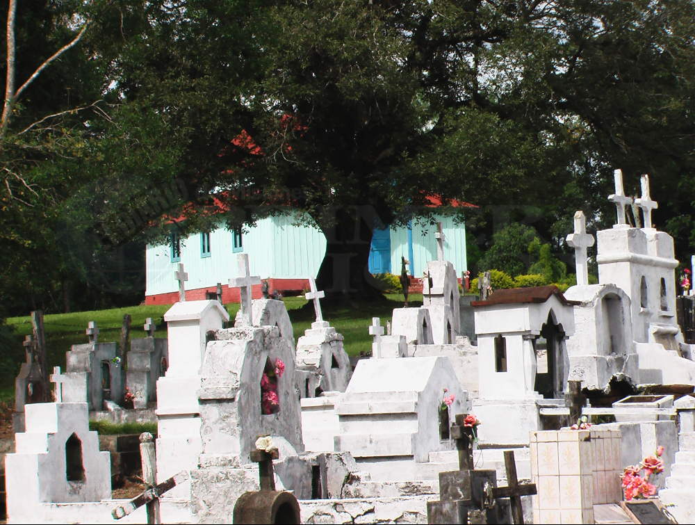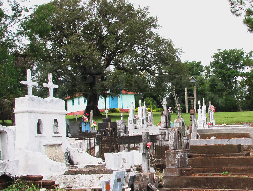El cementerio de Cerro Azul se encuentra ubicado a 150 metros de la capilla, y su emplazamiento siempre fue considerado importante por la feligresía.
