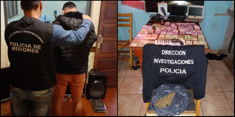 Producto de la intervención, los investigadores detuvieron a un joven de 23 años e incautaron en su morada un arma de fuego calibre 32 con seis vainas, un televisor 43 pulgadas, dos notebooks, 12.750 pesos, una máquina de cortar cabellos, una balanza digital y 400,5 gramos de cannabis sativa que fue corroborado por personal de la Dirección de Toxicomanía.