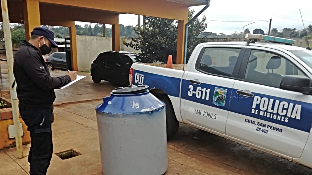 Esta mañana en un domicilio del Paraje Puerto Argentino, en la localidad de San Pedro, efectivos de la Comisaría Primera y de la División Comando Radioeléctrico de dicha localidad recuperaron un tanque de agua de 600 litros sustraído de la Escuela 904.