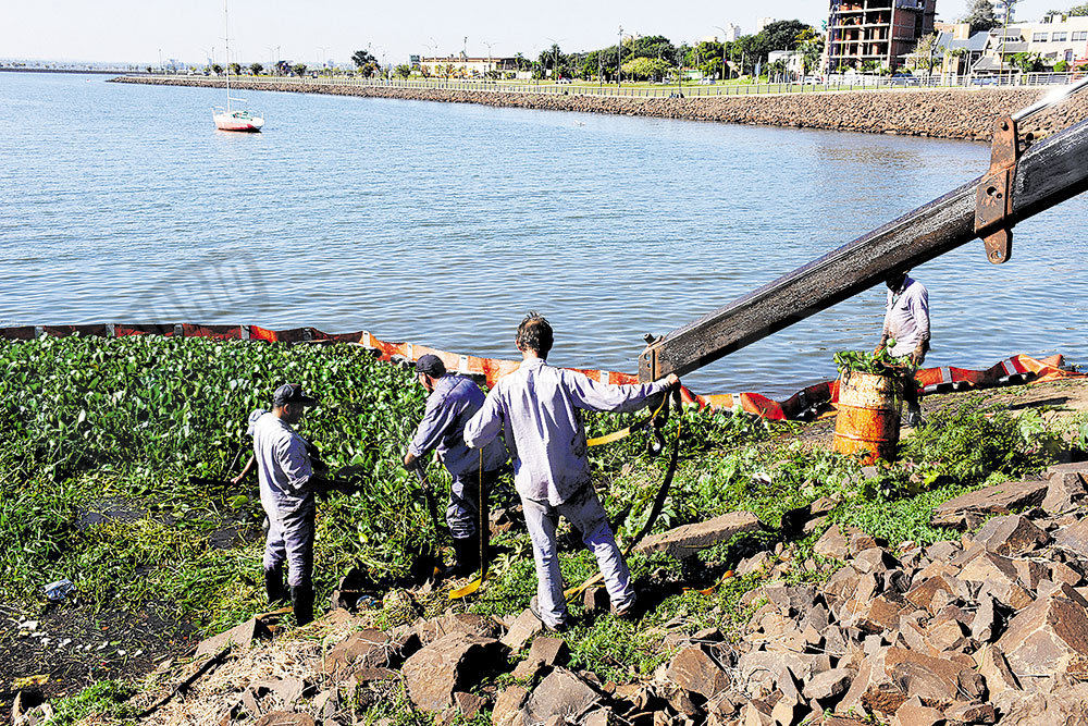 Tras la denuncia a las autoridades de Prefectura, Ecología y la Municipalidad local, operarios de una empresa retiraron ayer camalotales de la bahía El Brete. Allí se había concentrado una gran cantidad de sustancia, aparentemente aceite, que contaminó el río y habría provocado la mortandad de fauna y flora acuática.