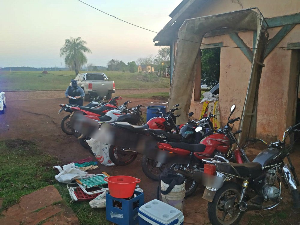 Además incautaron elementos de prueba para la causa que se investiga, como ser un ring, tres fundas galleras, púas y picos de platino, entre otros elementos. Además secuestraron ocho motocicletas, un Chevrolet Corsa y una Ford Ranger.