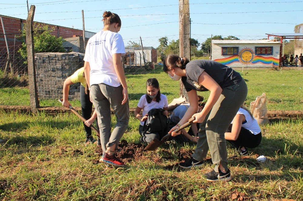 El sol derramaba primavera el pasado sábado 1 de agosto, cuando la organización solidaria Sincronía reunió a su grupo de niños, familias, amigos y vecinos del barrio Los Frutales de Posadas para dar las paladas iniciales al proyecto “Enraizar los Sueños”, una actividad educativa orientada a poner en acción las premisas de sostenibilidad ambiental y de trabajo compartido.