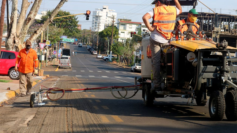 El trabajo consistió en pintar las líneas discontinuas de color blanco, con el fin de separar el doble sentido de circulación que van a tener las ciclovías. Una vez terminada la tarea en este sector, se replicará lo propio sobre Rademacher.