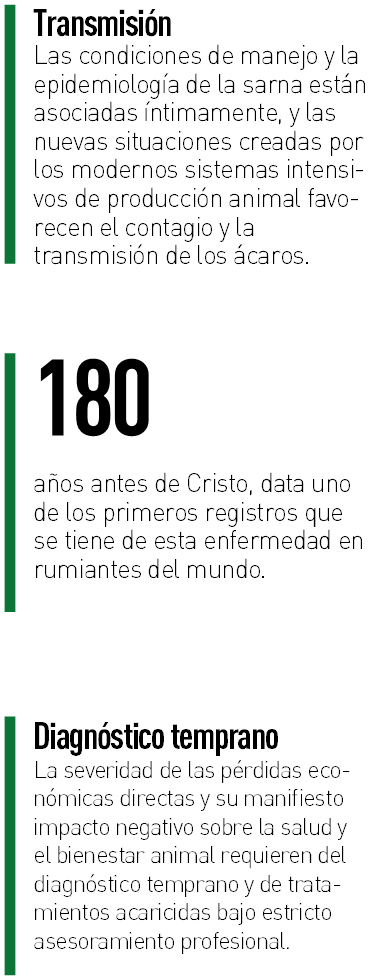 Aún con productos de eficacia comprobada, el manejo deficiente de los tratamientos ha impedido la erradicación de esta enfermedad en nuestro país. Con excepción de las lactonas macrocíclicas y milbemicinas frente a la sarna en bovinos, ningún producto tiene el poder residual suficiente para superar el período de incubación de los huevos.