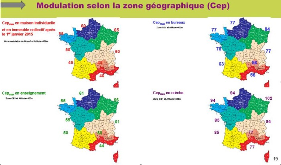 Lo faltante: establecer límites de consumo según zonas climáticas en Argentina. En consonancia con instructivos internacionales como la Reglamentación térmica 2012 de Francia se caracteriza por Limitación del consumo máximo de energía primaria (coeficiente Cep) limitada a un valor medio de 50 kWh/m /año modulado en función del departamento, la altitud topográfica, el tipo de edificación, sistema de generación de calor o frío y la superficie del edificio. La regulación incluye beneficios o cargas impositivas para el inmueble según los niveles de consumo.