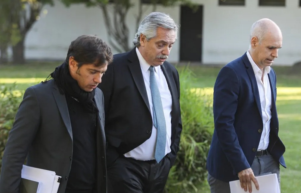 El anuncio de la nueva cuarentena se realizará, como viene sucediendo, este viernes al mediodía en la quinta presidencial de Olivos, por ahora solo con la presencia de Kicillof y Rodríguez Larreta. También se especula que pueda ser parte de los anuncios, de modo virtual, el gobernador de Jujuy, Gerardo Morales.
